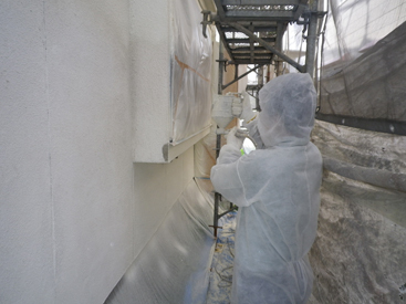 足場の架設→洗浄→養生→下地調整→塗装(下塗り・中塗・上塗り)の順で工事を行っていきます。